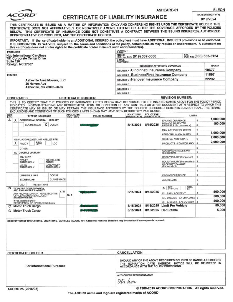Here at Asheville Area Movers, we take your personal information and privacy seriously. We never share your details with anyone outside of our trusted, “need to know” team. Your belongings are safe, secure, and private with us—always.